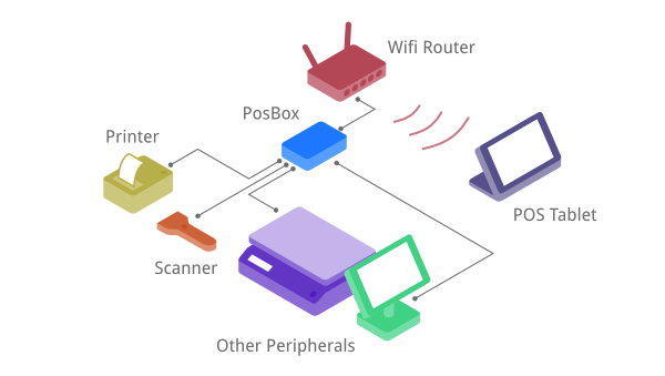 Our PosBox turns ordinary USB peripherals into networked peripherals, saves your cost for at least 2x, even including the PosBox. Say goodbye to expensive & unreliable bluetooth/wireless peripherals. Plug all USB peripherals into PosBox, and connect the PosBox to local network, everything is ready to go.